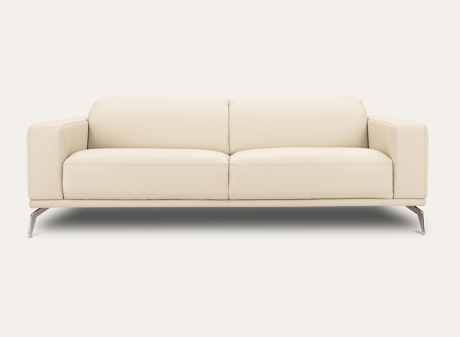 Featuring a solid hardwood internal structure, generously cushioned seating, a clean-lined contemporary silhouette with wide armrests, and elevated metal legs, the Alaina Sofa is available in premium leather upholstery, delivering durability, comfort, and refined luxury.