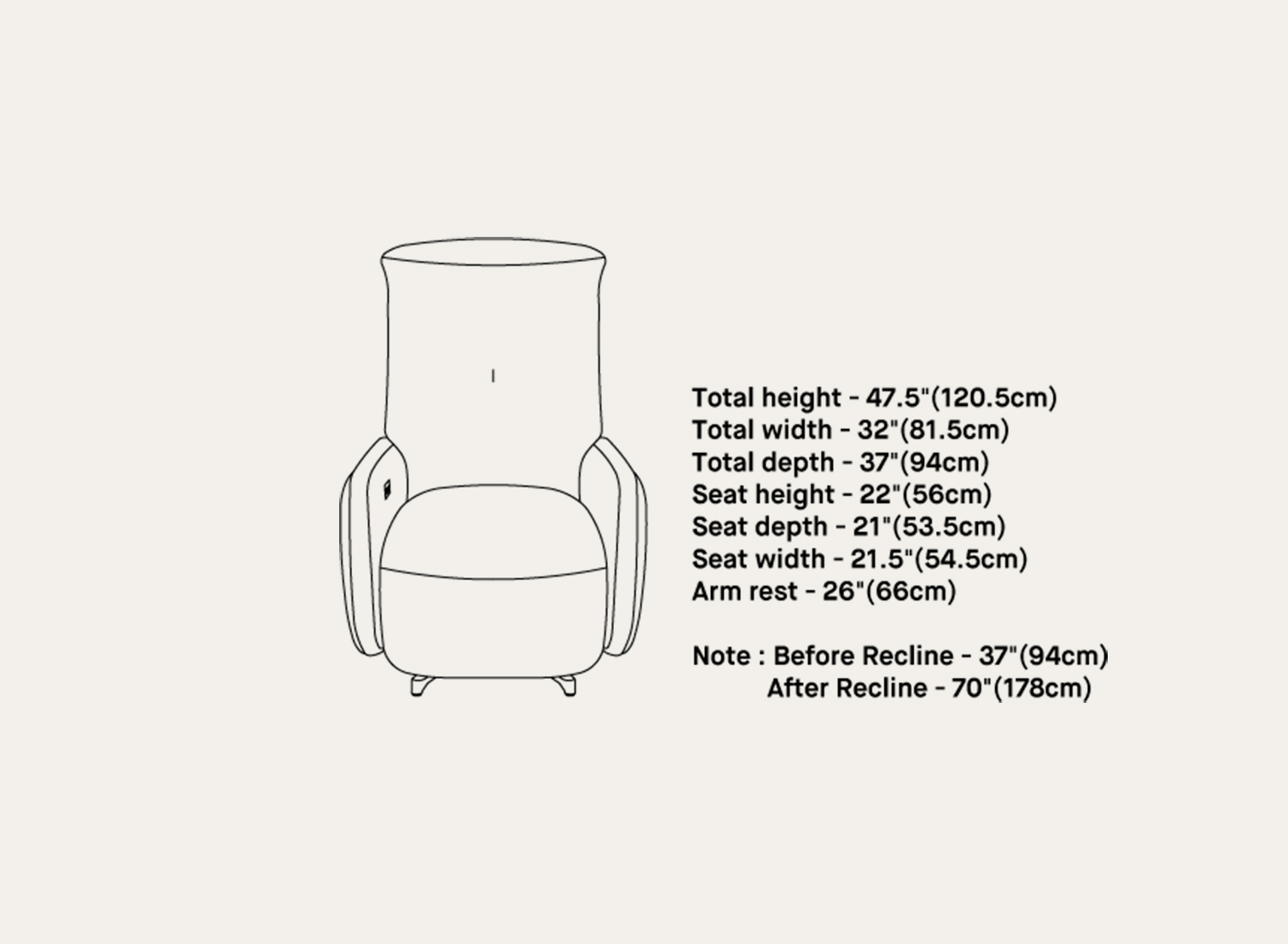 The Frankfurt Motion Recliner is thoughtfully designed to combine superior comfort, smooth motion functionality, and a timeless contemporary form. Its plush, deeply cushioned seat and tall backrest create a relaxing and supportive seating experience, while the ergonomically shaped structure ensures optimal alignment for the back, shoulders, and neck. Crafted with a robust internal frame, the Frankfurt offers long-lasting strength, stability, and dependable everyday performance. Softly padded armrests add to the overall comfort while maintaining a refined and well-balanced silhouette. Featuring an advanced motion reclining mechanism, the chair allows seamless adjustment into multiple resting positions, enabling effortless relaxation at the touch of a control. Supported by a sturdy metal base, the recliner ensures smooth movement, excellent balance, and enhanced durability.