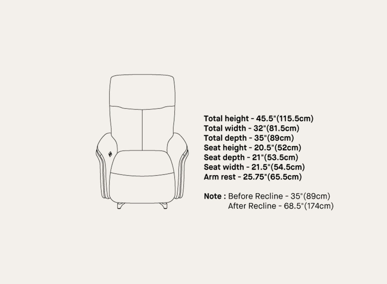 The Hamburg Motion Recliner is thoughtfully crafted to deliver superior comfort through a harmonious blend of plush cushioning, ergonomic support, and smooth motion reclining functionality. Its generously padded seat and tall, supportive backrest are designed to provide a deeply relaxing seating experience, while the carefully contoured structure promotes proper posture and support for the back, shoulders, and neck during extended use. Engineered with a strong internal frame, the Hamburg ensures lasting durability, structural stability, and reliable performance for everyday living. The softly cushioned armrests add an extra layer of comfort while maintaining a refined and contemporary visual appeal. Equipped with a smooth motion reclining mechanism, the chair allows effortless adjustment between upright and reclined positions, offering personalized relaxation with ease. Supported by a sturdy metal base, the recliner provides balanced movement, strength, and dependable support.
