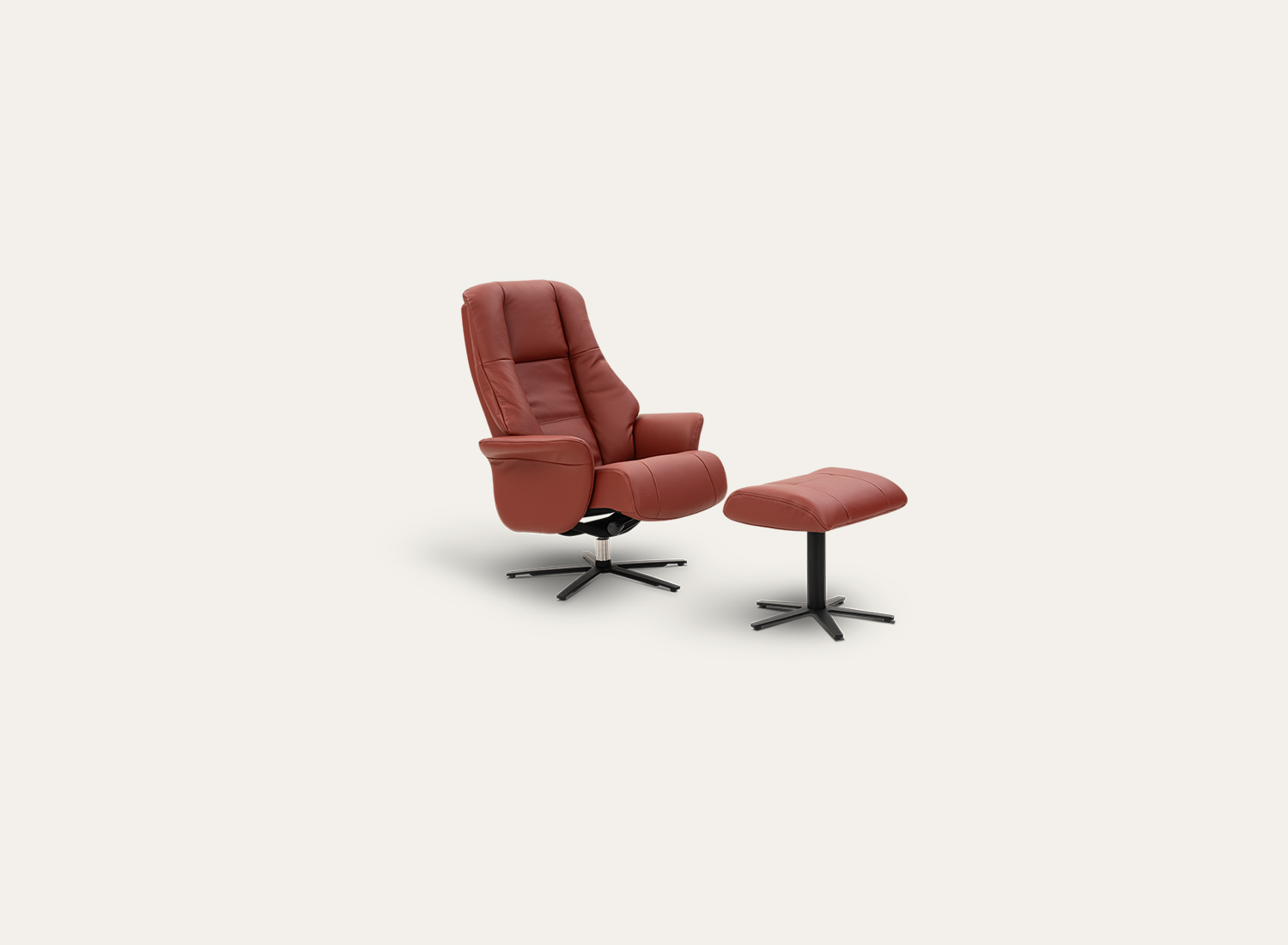 The Helsinki Recliner is thoughtfully crafted to deliver a refined balance of luxurious comfort, ergonomic support, and contemporary elegance. Designed with a generously cushioned seat and a tall, well-contoured backrest, it provides exceptional support to the spine, neck, and shoulders, making it ideal for prolonged relaxation. The softly padded armrests enhance overall comfort while maintaining a sleek and structured form. Paired with a matching footstool, the Helsinki Recliner allows the body to fully unwind, promoting a relaxed and restful posture. Built on a robust internal frame, the recliner ensures durability, stability, and long-lasting performance. Its smooth swivel base enables effortless movement and flexibility, while the carefully engineered reclining mechanism offers seamless transitions between sitting and lounging positions.