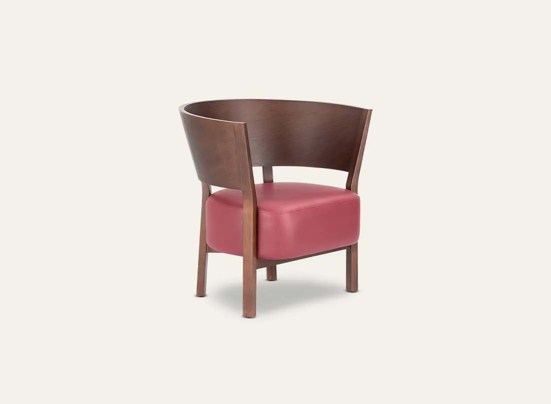 Crafted with a solid wood frame, Max features a gracefully curved backrest and integrated arm support. The generously cushioned seat is upholstered in premium leather or fabric, offering lasting comfort and durability.