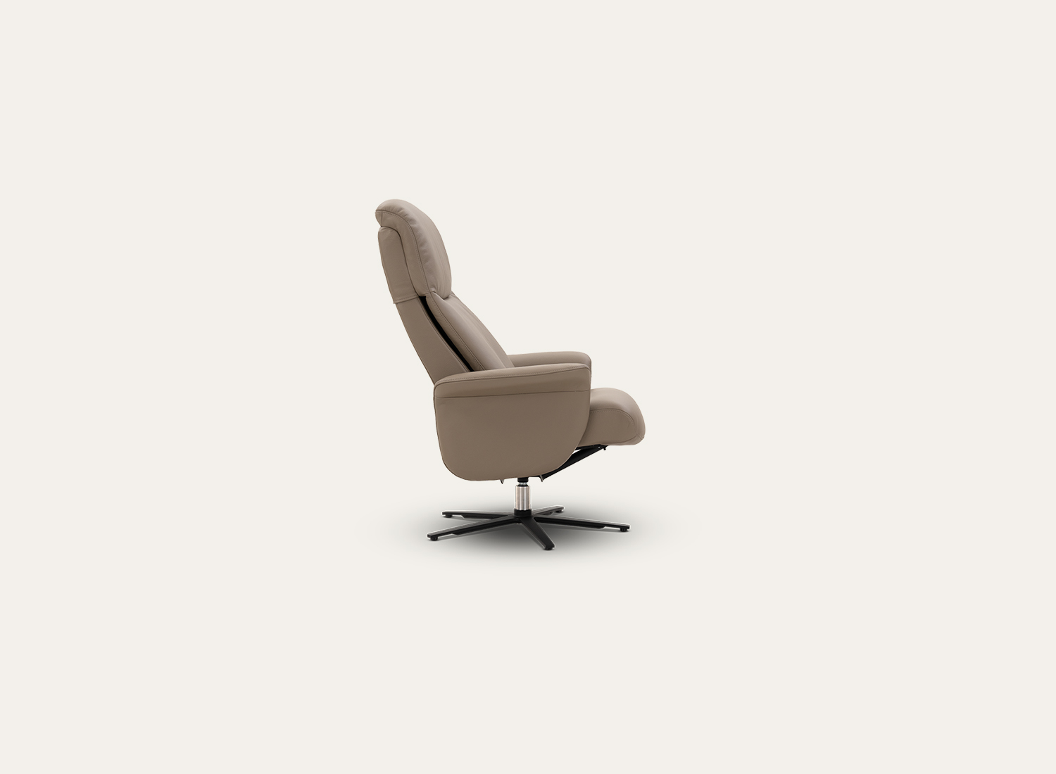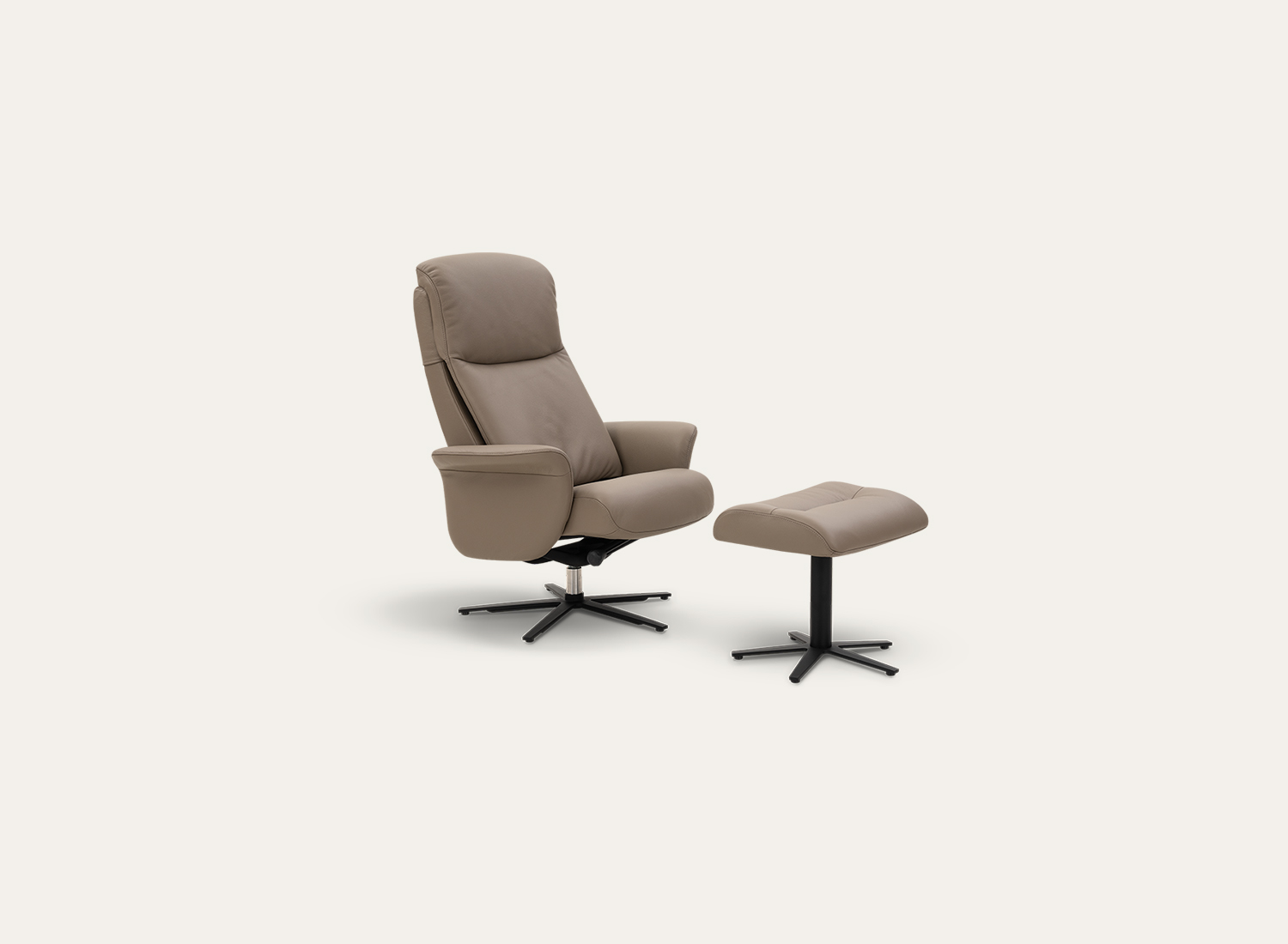 The Stavanger Recliner is designed to deliver superior comfort with a clean, understated aesthetic that fits seamlessly into contemporary interiors. Its well-cushioned seat, supportive high backrest, and gently contoured armrests provide a relaxed and ergonomic seating experience. The smooth reclining mechanism allows you to effortlessly adjust your position for optimal comfort, whether you’re reading, resting, or unwinding. Upholstered in premium leather with a soft, sophisticated finish, Stavanger combines durability with a luxurious feel. Paired with a matching footstool and supported by a sleek swivel base, it offers balanced support and gentle movement, making it an ideal choice for living rooms, lounge areas, or personal comfort zones.