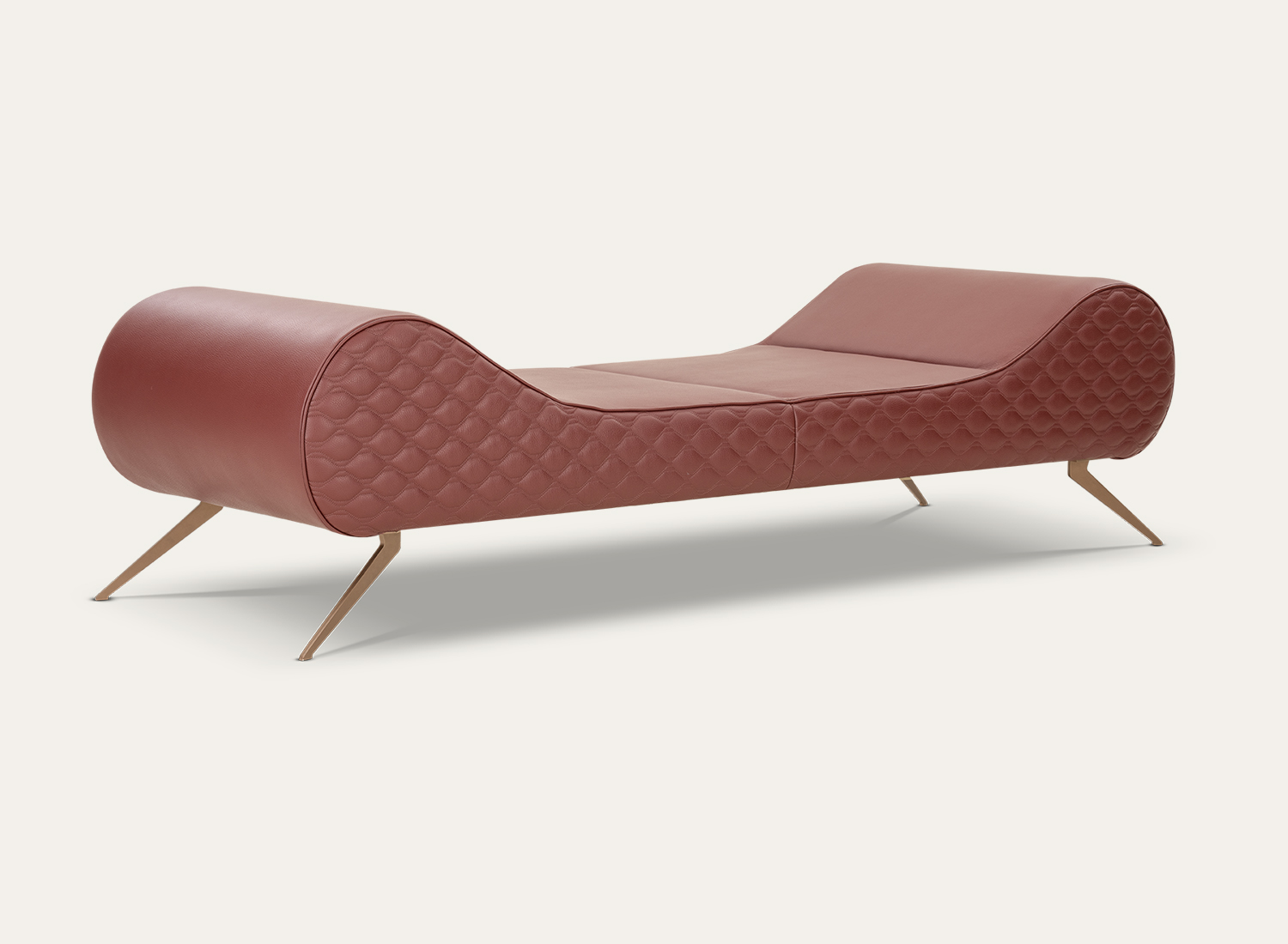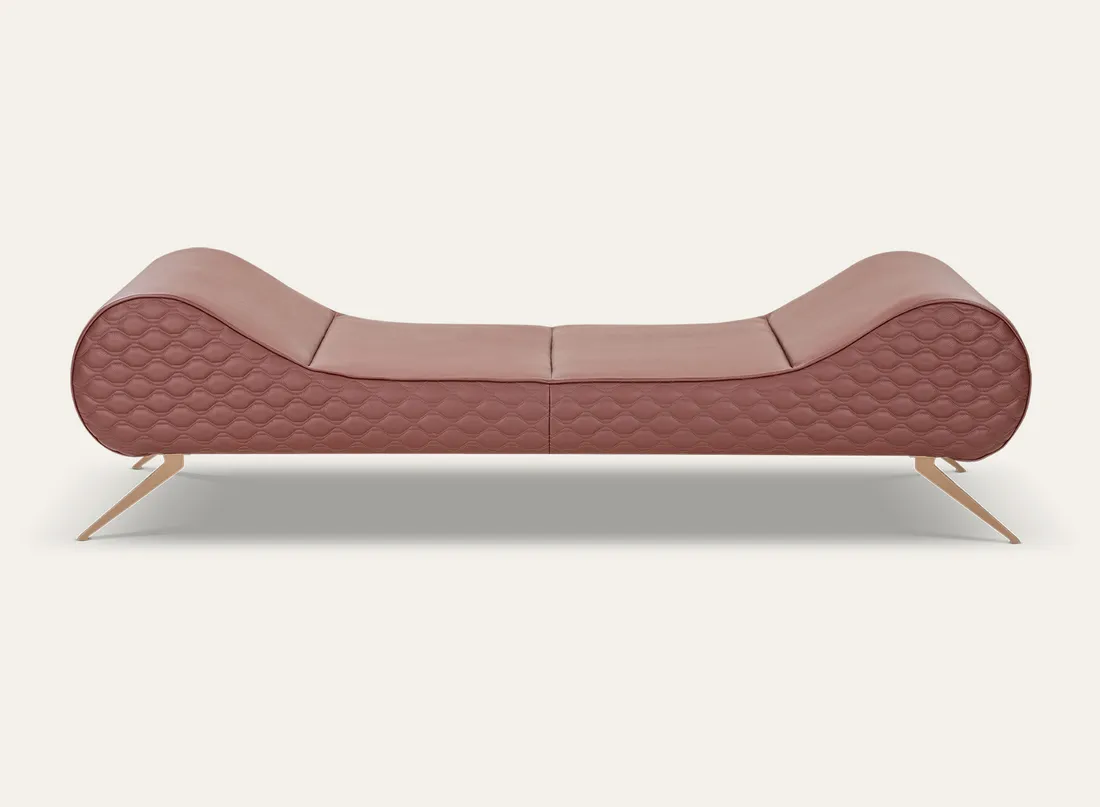 The Superb Day Bed combines sculpted comfort, quilted detailing, and sleek metal legs for a refined contemporary lounging experience.
