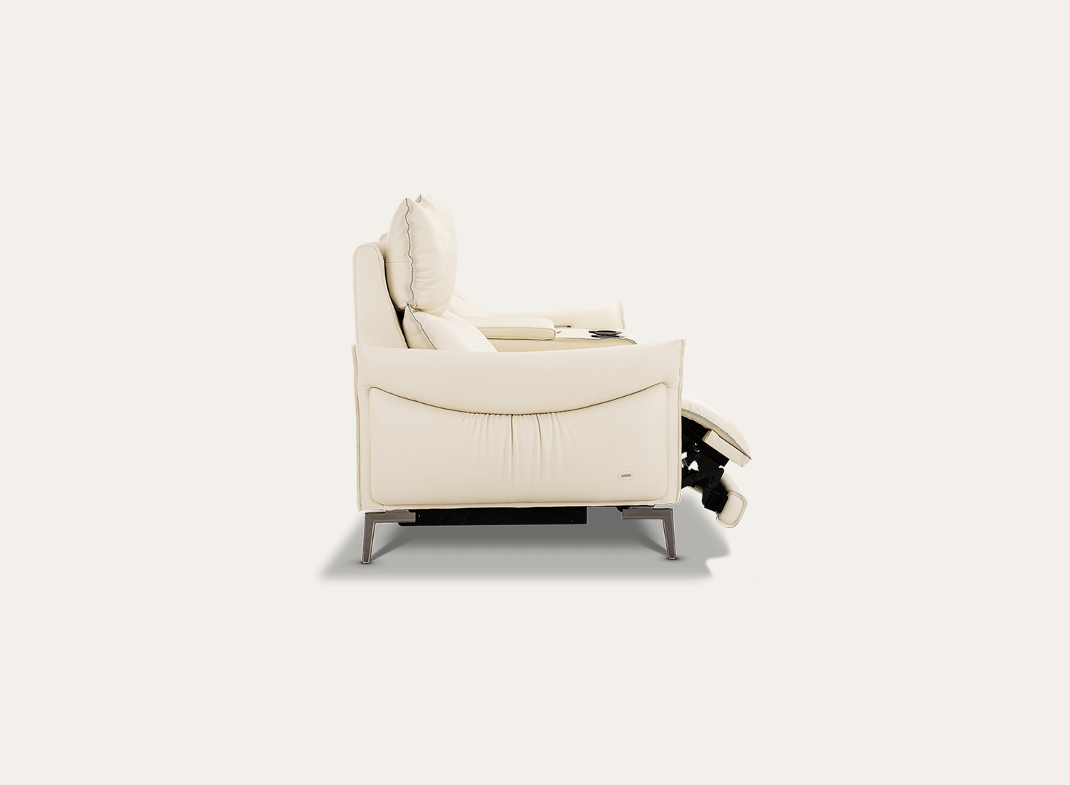 The smooth reclining mechanism allows effortless adjustment to achieve personalized comfort. Tall, plush backrests provide enhanced neck and lumbar support, promoting superior ergonomics. The integrated center console with cup holders adds everyday convenience while maintaining a clean, minimal aesthetic.